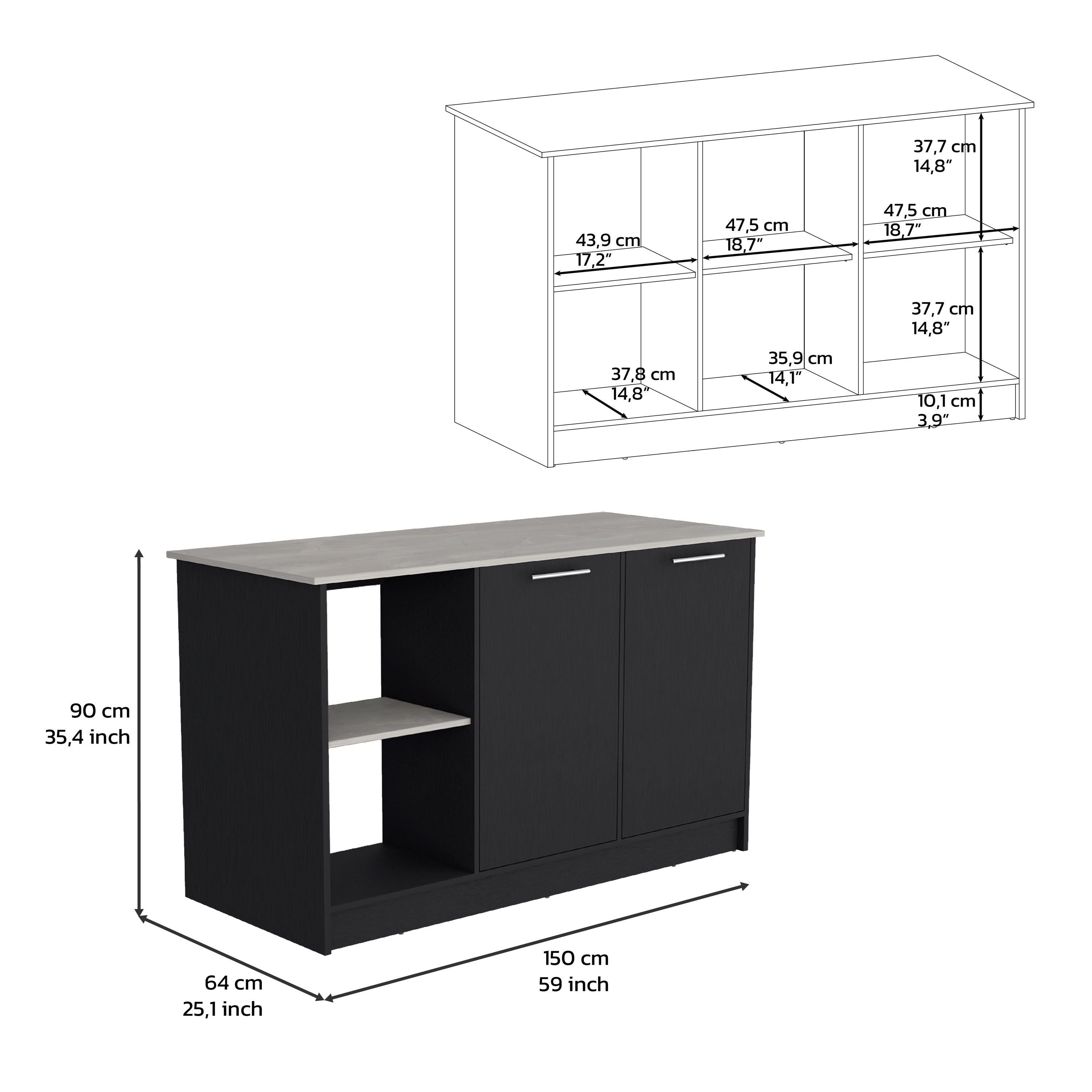The Coral Kitchen Island is the perfect addition to your modern kitchen. Its large top surface (25.19 inches Deep x 59 inches Wide) and double-door cabinet with inner storage provides plenty of space to work and store your belongings. The white/light oak, black/macadamia, black/onyx and white/onyx manufactured wood finish gives it a stylish and contemporary look that will complement any kitchen décor.